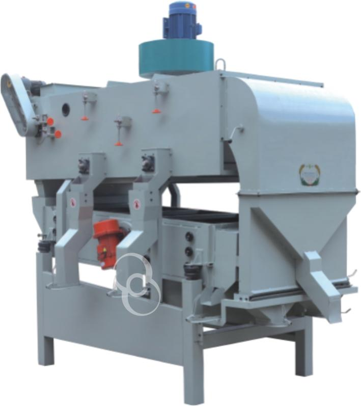 篩選體積相同而比重不同之豆類或谷類(如芝麻、綠豆、瓜子、種子等),去除未成熟與蟲蛀及破碎的豆類或谷類。不受場地限制,一般加工廠均可使用。可依物料顆粒大小、干濕度,調(diào)節(jié)速度進行篩選。此機型可單機使用,配合整廠設(shè)備(如選石機、大小選別機、磨光機…等)效果更佳。